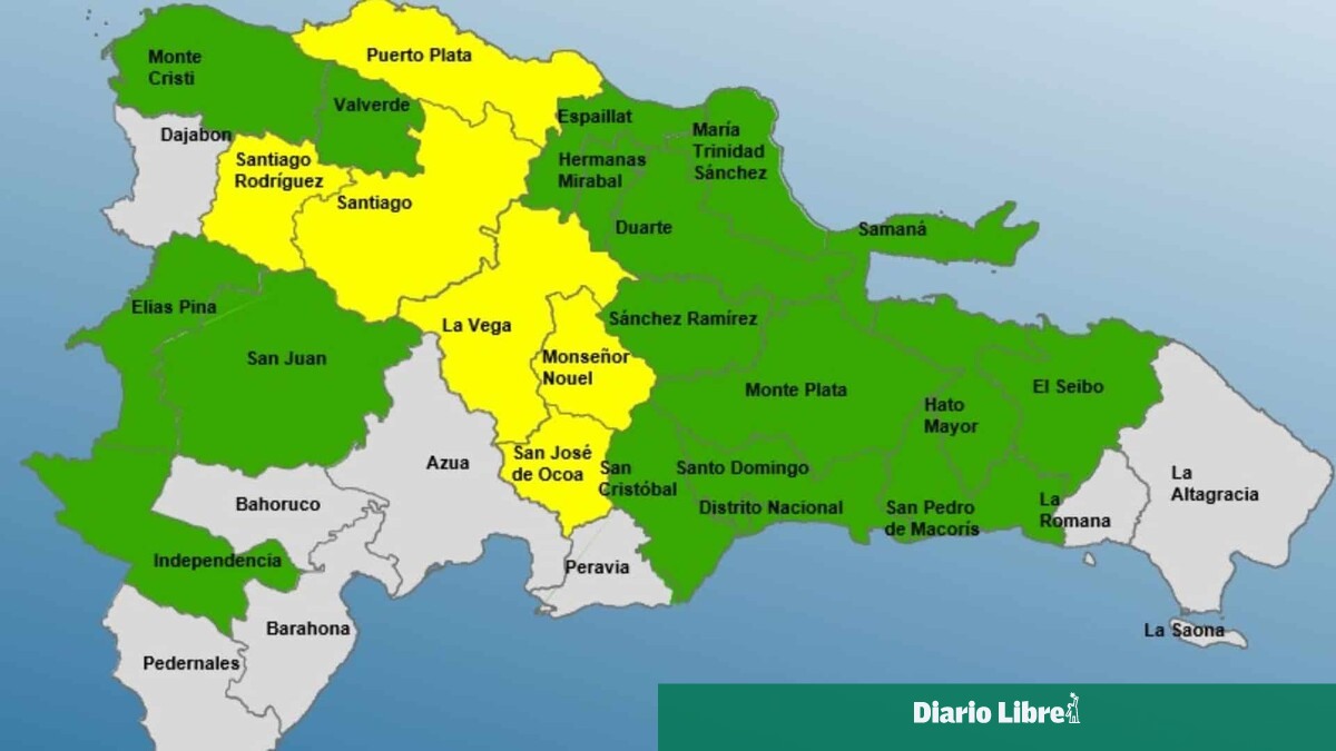 - En alerta amarilla se encuentran Puerto Plata, San José de Ocoa, Santiago, La Vega, Santiago Rodríguez y Monseñor Nouel.