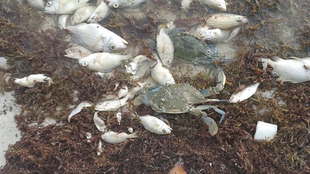 "La playa está llena de peces muertos de todos los tamaños, no son solo los que están en la orilla, hemos caminado hacia adentro y todo eso blanco que se ve son peces", relató Manuel Castro, prestador de servicios acuáticos en la zona.